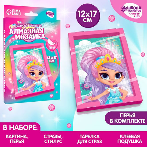 Алмазная мозаика — это увлекательный вид творчества, который понравится любому малышу!Ребёнку предстоит разложить кристаллики карандашом по пронумерованной схеме, заполнив полотно. Основа с клеевым покрытием будет надёжно удерживать стразы. На ней уже обозначены необходимые оттенки.В наборе есть всё необходимое:картина-основа;стразы;тарелка для страз;клеевая подушка;стилус;перья. Количество цветов: 4. Для кого: Для девочки. Ширина, см: 12. Высота, см: 17. Возраст: От 3 лет. Тематика: Детская. Тематика праздника: 8 Марта. Тип выкладки: С частичным заполнением. Форма страз: Круглые. Тип основы: Картон. Бесплатная доставка: Да. Наша разработка: Да. Размеры товара: 12.5/1.8/17.5.