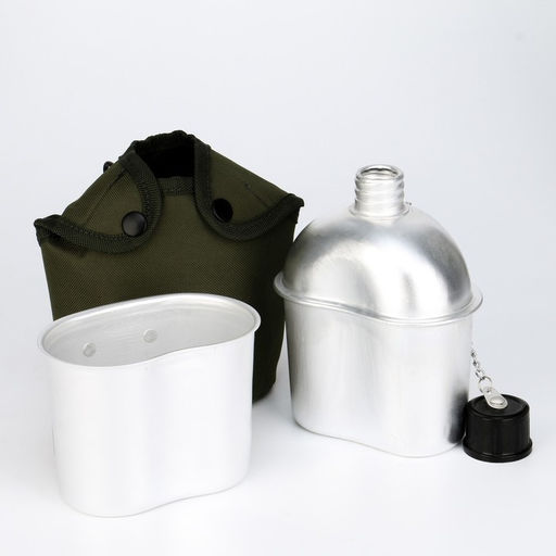 Фляжка армейская походная Adventure 0.8 л для воды, с котелком, металл, зелёный чехол