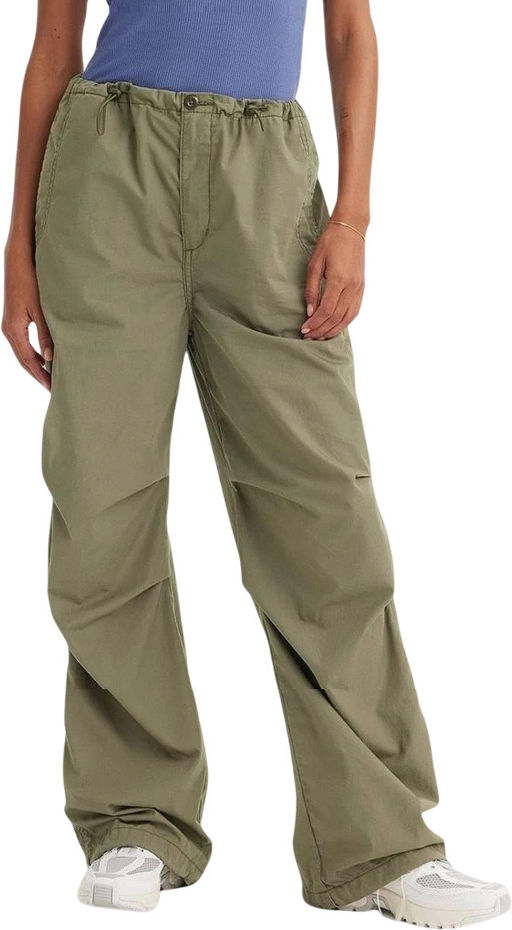 Женские брюки Levi’s Parachute Pants — это стильная и современная интерпретация классических брюк-парашютов. Брюки выполнены из легкой хлопковой ткани поплин без эластичных волокон. Они имеют среднюю посадку на талии и широкий крой брючин, что визуально удлиняет ноги.
