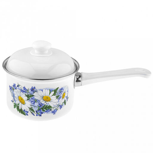 "Ромашковое поле" Ковш эмалированная 1,5л, форма цилиндрическая, металлическая крышка (Россия)