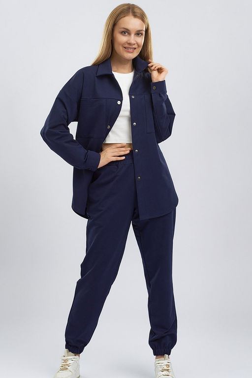 Рубашку oversize можно носить заправленной или на выпуск, дополнив топом или футболкой. Брюки женские подходят для любого типа фигуры, скрывают ее недостатки и подчеркивают достоинства. Состав трикотажа: 75% хлопок, 20% полиэстер, 5% спандекс.­