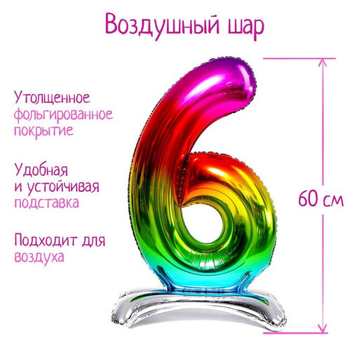 Воздушный шар фольгированный 32" «Цифра 6», на подставке, градиент