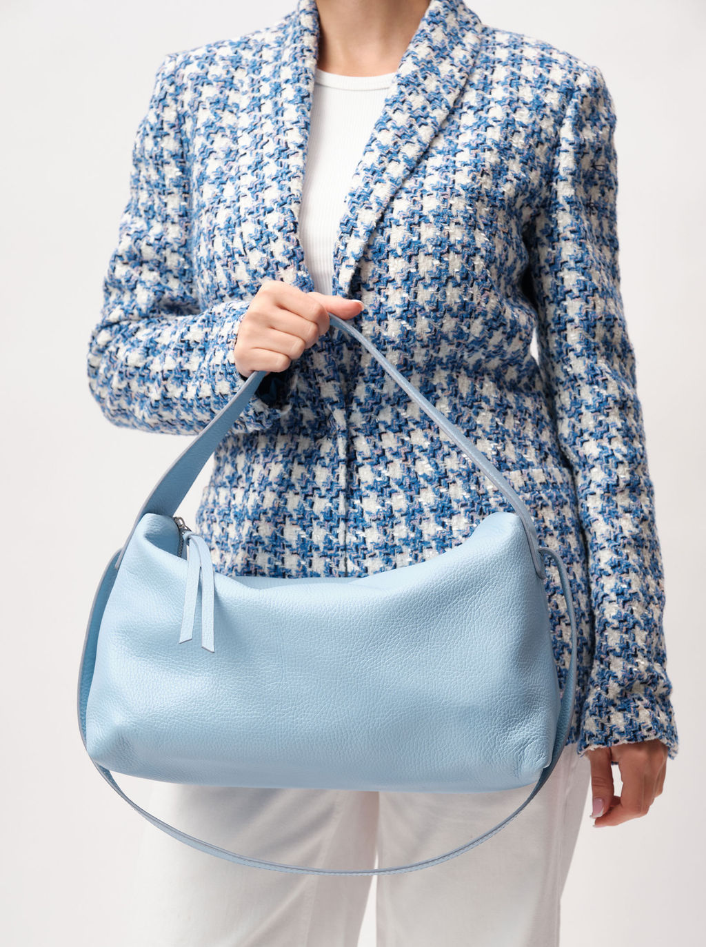 Женская кожаная сумка мягкой формы в пастельно-голубом оттенке Azaro 30712 облако в небе из натуральной кожи.