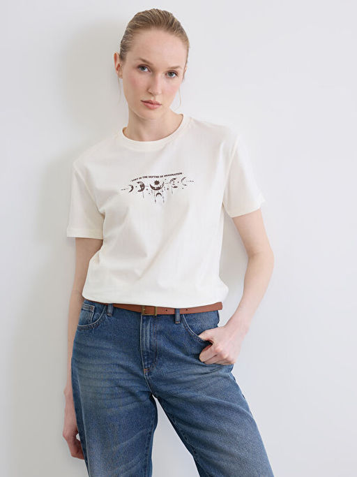 • Bisiklet Yaka Bask?l? Kad?n Ti??rt