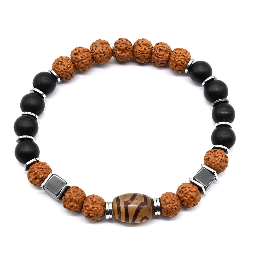 Браслет из шариков рудракши 10мм, шунгита диаметром 8мм, кубик гематит 6*6мм.