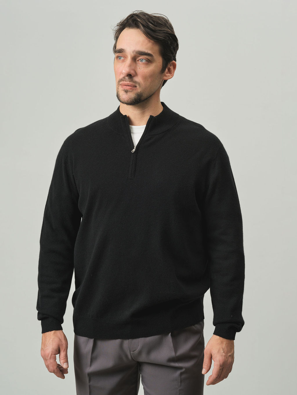 Безупречный мужской джемпер из 100% кашемира в классическом черном цвете воплощение элегантности и премиального качества. Исключительный кашемир высшего сорта обеспечивает непревзойденную мягкость, невесомость и превосходные теплоизоляционные свойства, создавая ощущение абсолютного комфорта.