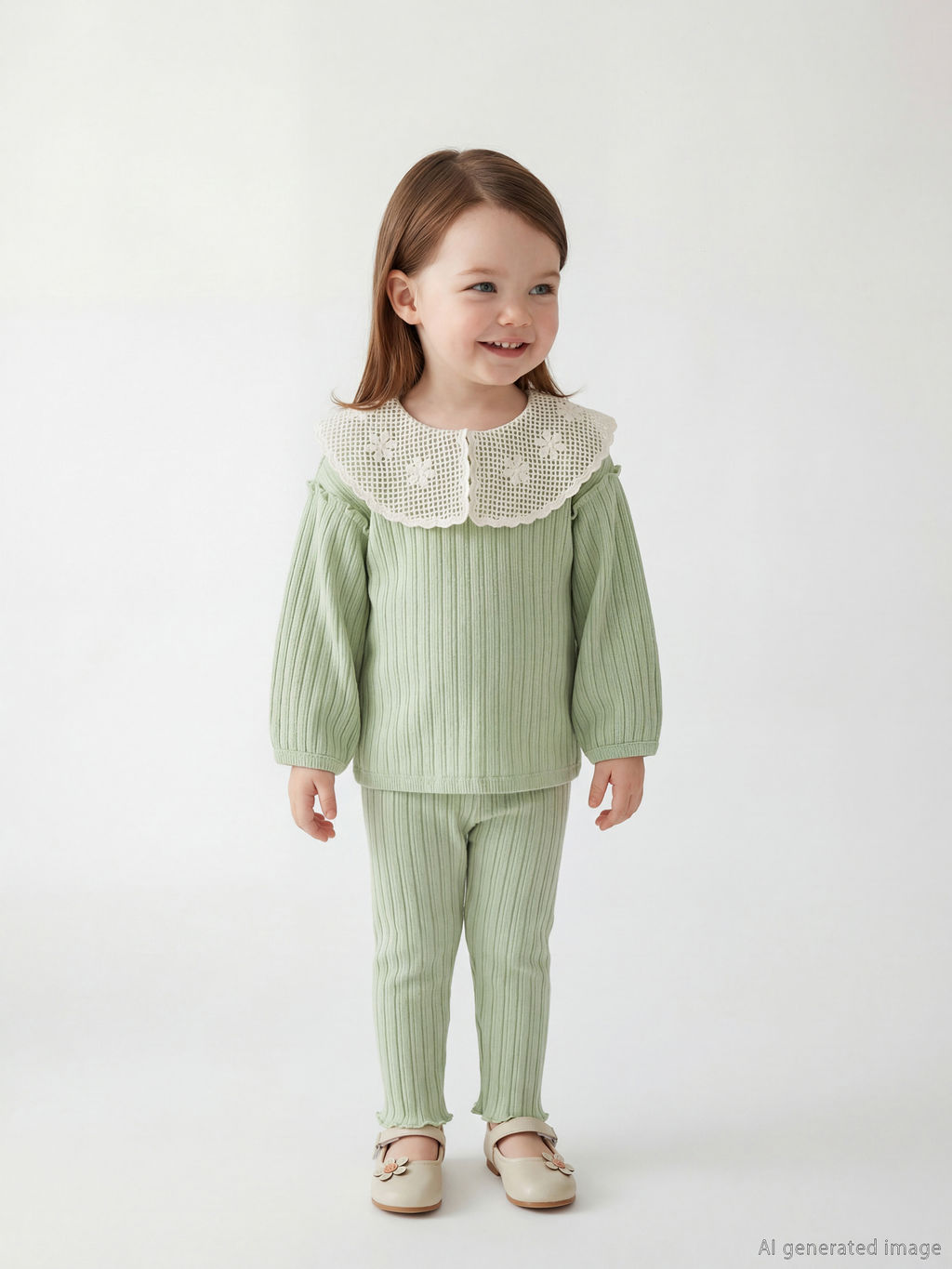 Bebe Yaka Desenli Uzun Kollu K?z Bebek Bluz ve Tayt