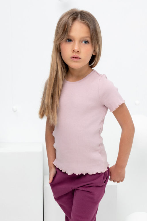 Футболка для девочки из эластичного трикотажа в рубчик­