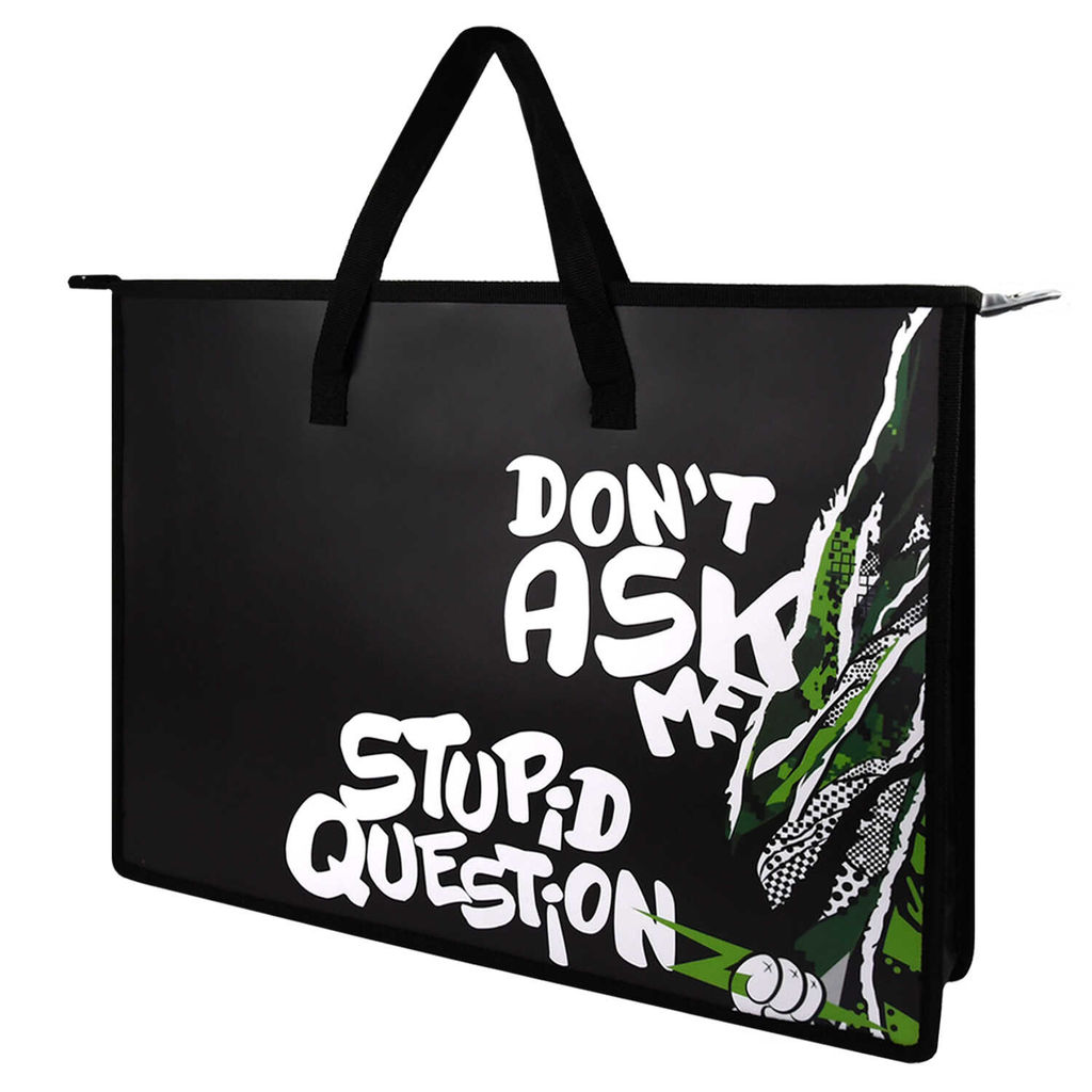 Папка для чертежей и рисунков пластиковая Феникс+, арт. 69272/ 12 НЕ ЗАДАВАЙ ВОПРОСОВ (полипропилен, формат А3, 45x33х9 см, 1 отделение (-я), молния, карман внутренний из ПВХ, дно с расширением, текстильные ручки, УФ-печать)