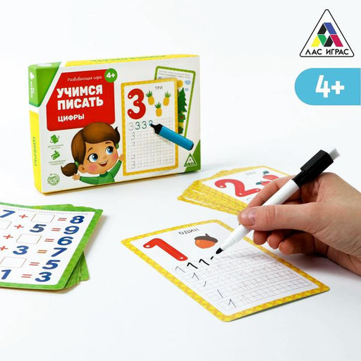 Учимся писать цифрыС помощью этих карточек ребёнок повторит счёт от 0 до 9, научится правильно писать цифры, а также потренируется в решении примеров на сложение и вычитание в пределах 10.Что нужно делать?В наборе вас ждут 18 двухсторонних карт, на одной стороне которых находятся прописи, а на другой — задания на поиск, счёт и простые арифметические действия (сложение и вычитание).Секрет карточек в том, что они ламинированные, поэтому написанное легко стереть обратной стороной маркера. Играть можно снова и снова!Внутри вы найдёте18 двухсторонних карт.Маркер.Готовим руку к письму, играя! Возраст: От 4 лет. Тематика праздника: 1 Сентября. Количество игроков: 1 игрок. Количество игроков: 2 игрока. Жанр игры: Развивающая. Повод для игры: Для малышей и дошкольников. Повод для игры: В школу. Повод для игры: 1 Сентября. Развитие навыков: Буквы, цифры. Развитие навыков: Моторика. Тема обучения: Цифры, счёт, математика. Количество игроков: 1 - 2. Бесплатная доставка: Да. Наша разработка: Да. Размеры товара: 11.5/2/17.