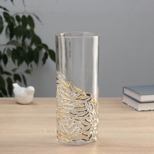 • Ваза для цветов «Милагрос», узоры низ, 24×10 см, стекло, прозрачная
