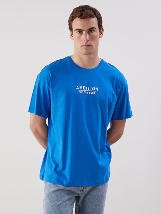 • Bisiklet Yaka Bask?l? Penye Erkek Ti??rt