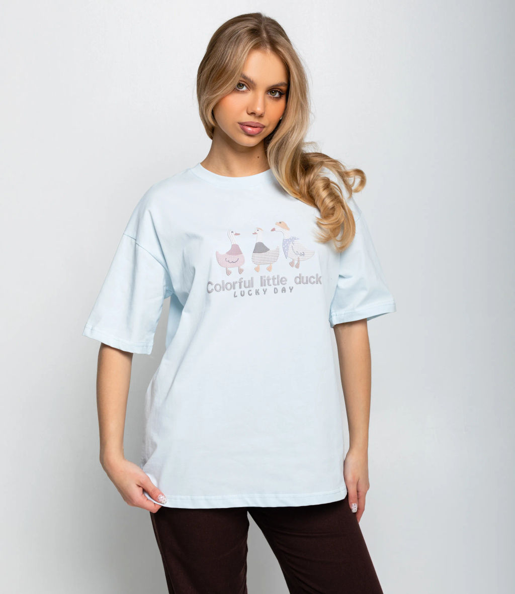 Футболка это одежда, которая подчёркивает женственность любой женщины. Модель отлично подойдёт для летнего сезона и будет востребована в ваших розничных магазинах. Свободная футболка оверсайз с круглым вырезом, опущенной линией плеча, короткими рукавами и прямым подолом до середины бедра, мягкий трикотаж. Центральный принт с небольшим графическим мотивом и текстовой вставкой, аккуратно расположенный на груди. Для пошива использована ткань из 80% хлопка, 20% полиэстера, отличающаяся плотностью, эластичностью и износостойкостью. Материал сохраняет форму и внешний вид даже после многократных стирок, поэтому футболка будет хорошо продаваться в рознице. Цвета насыщенные и полностью соответствуют фотографиям на сайте. На странице размещена таблица размеров: воспользовавшись ею, вы сможете самостоятельно снять мерки и убедиться в правильности подбора. Установленная оптовая цена является выгодной; для оптовых клиентов действуют гибкая система скидок и индивидуальные условия сотрудничества. Уточнить минимальный заказ и сроки поставки можно у менеджера. Предложите своим покупательницам женственную и практичную футболку, которая станет надёжным товаром в ассортименте ваших магазинов. -- Характеристики -- Цвет: голубой Пол: Женский Страна производитель: Китай Сезон: Всесезонный Материал: Хлопок, Полиэстер