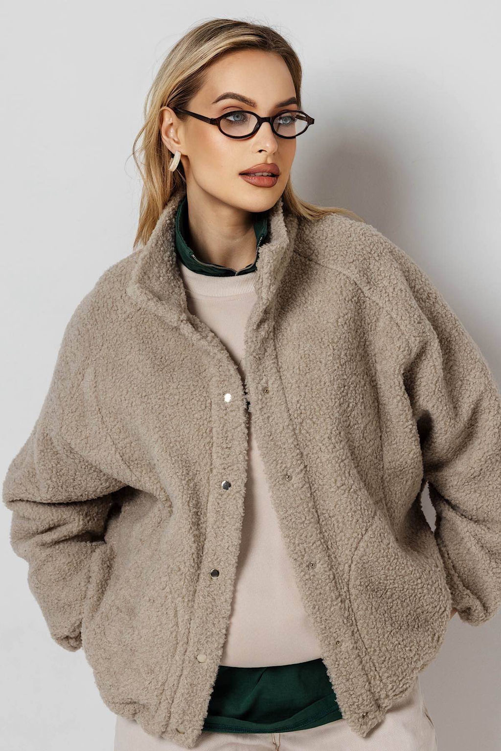 Трикотажный жакет без подклада, свободного силуэта в  стиле бомбер с воротникомстойкой и втачным рукавом полной длины на на резинке с фиксатором это универсальный предмет гардероба, который подойдет для повседневного образа. Застежка Молния. Жакет будет подойдет для офиса, школы, повседневного образа. Накладные карманы­