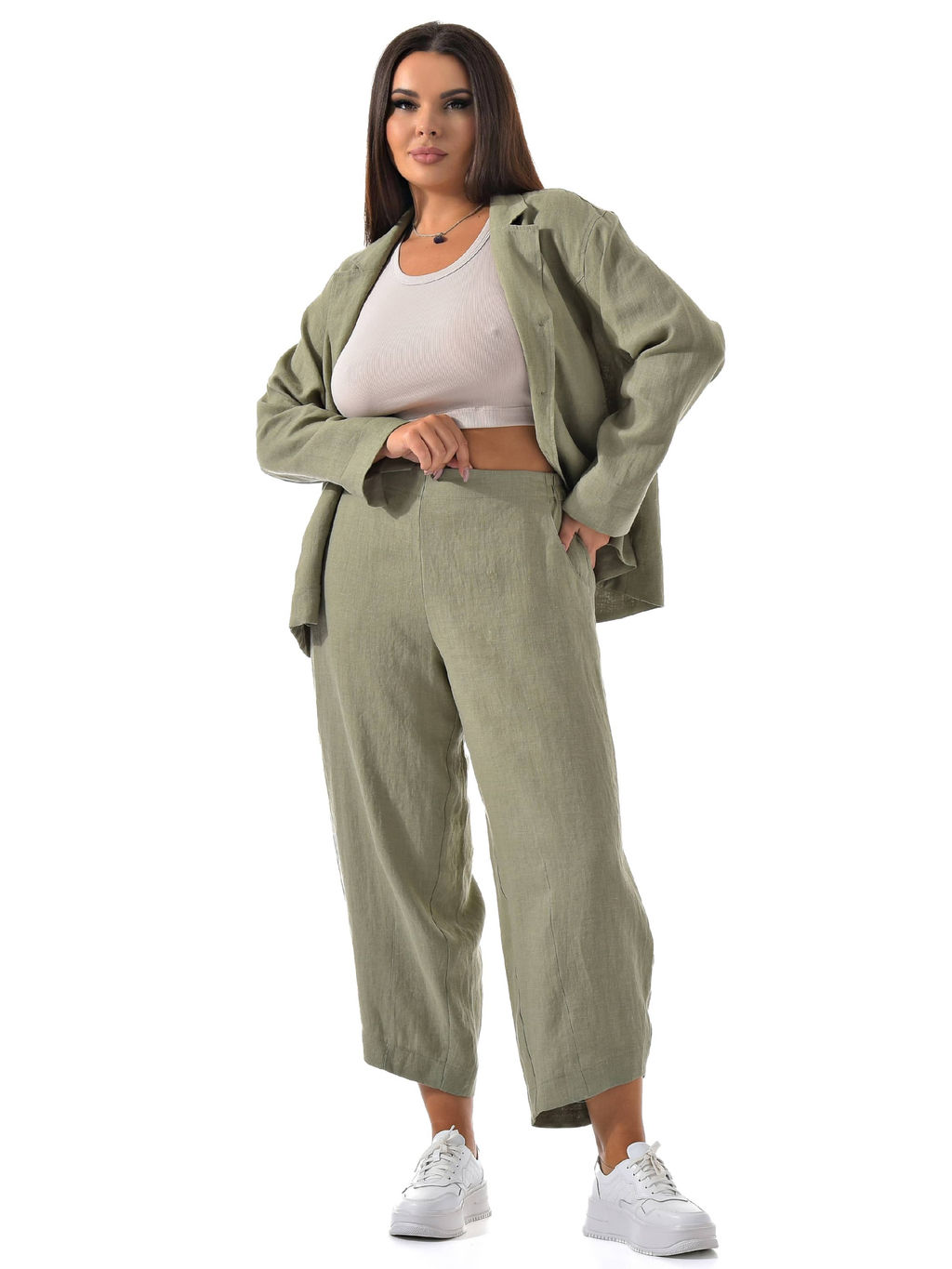 Зауженные льняные брюки - идеальный выбор для стильной и модной женщины, которая ценит комфорт и качество в одежде. Эти брюки на резинке отлично подойдут как для повседневного образа, так и для особых случаев. Базовый дизайн и высокое качество материала делают эти штаны из льна универсальным элементом гардероба. Брюки из 100% натурального льна позволяют коже дышать в жаркие летние дни, а также создают легкий и свободный образ. Льняные штаны прекрасно сочетаются с различными верхами - от пиджака до бомбера, что делает их идеальным выбором как для офисного стиля, так и для пляжного образа. Пояс на резинке обеспечивает удобную посадку на талии, а карманы добавляют удобства и функциональности. Брючки можно носить как с каблуками, так и с кроссовками - они будут выглядеть стильно и элегантно в любом случае. Брюки зауженного кроя, удлиняют ноги и делая силуэт более изящным. Льняной материал придает брюкам легкость и воздушность, что делает их идеальным выбором для жаркого летнего сезона. Натуральный цвет льна добавляет гармонии и экологичности образу, его оценят поклонники стиля бохо.