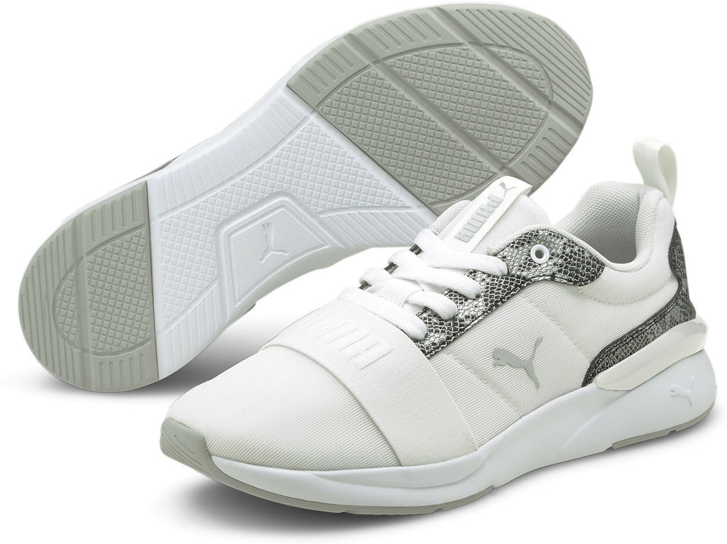 Предлагаем новую модель для женщин, выполненную в современном стиле с множеством изящных и интересных деталей. Верх кроссовок Rose Plus из ткани, имитирующей неопрен, с деталями из искусственной кожи и термополиуретана выполнен в модном "экологичном стиле", оживляемом обновленной фирменной символикой PUMA в виде объемного принта с логотипом на союзке и вышитой надписи PUMA на тесьме-застежке. Рядом со шнуровкой и на заднике имеются вставки из материала, имитирующего змеиную кожу, что вполне соответствует модному сезонному тренду.