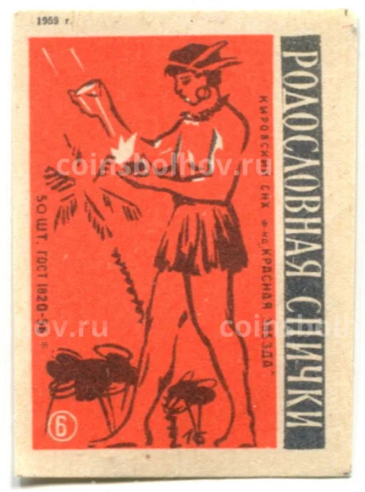 Этикетка спичечная Родословная спички № 6 фабрика Красная звезда