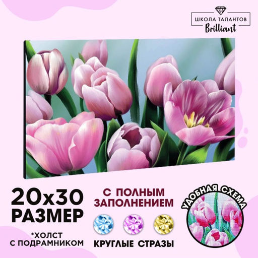 Алмазная мозаика на подрамнике с полным заполнением «Букет тюльпанов», 20 х 30 см