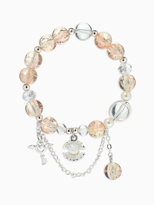 • Браслет с подвесками «Сахарный» ракушка, шар №10/8, d=6 см, шампань в серебре