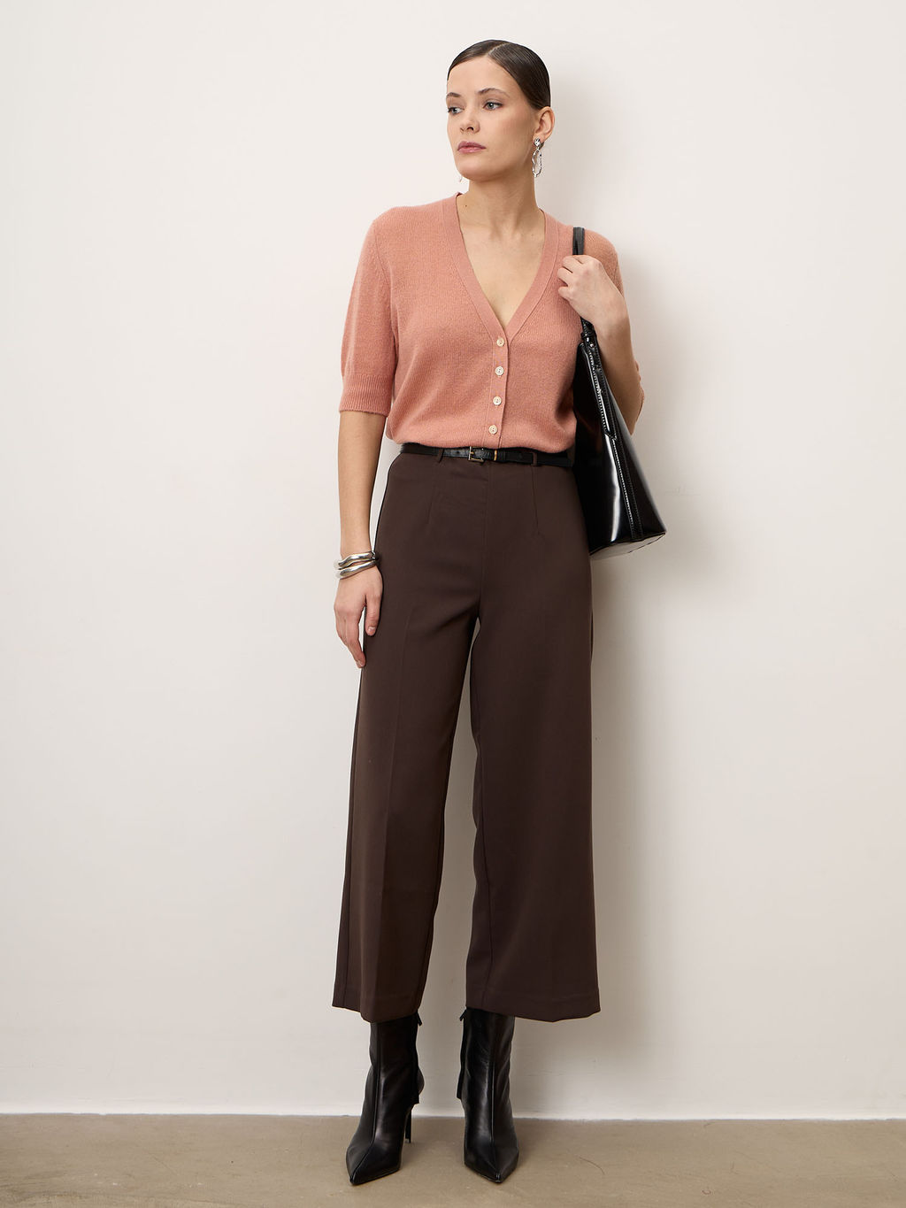 Короткий рукав современный, утончённый акцент, позволяющий сочетать кардиган с топами, рубашками и платьями.