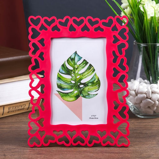 Фоторамка для фотографии 10×15 см «Сердца», пластик, малиновая, 20.8×16 см