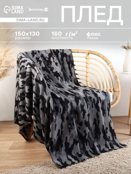 Плед флисовый Экономь и Я. Камуфляж (вид 2), 150?130 см, плотность 160 г/м?