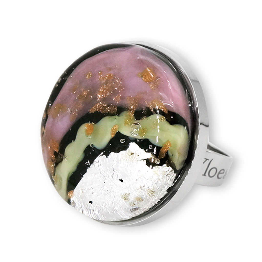 Кольцо изготовлено из муранского стекла и гипоаллергенной ювелирной стали, что очень важно для людей с чувствительной кожей. Металл не темнеет и не подвергается воздействиям окружающей среды, надолго обеспечивая красивый внешний вид изделия. Диаметр стеклянного элемента - 2,5 см. Кольцо безразмерное, регулируется с 16 до 19 размера. Вес - 12 гр.