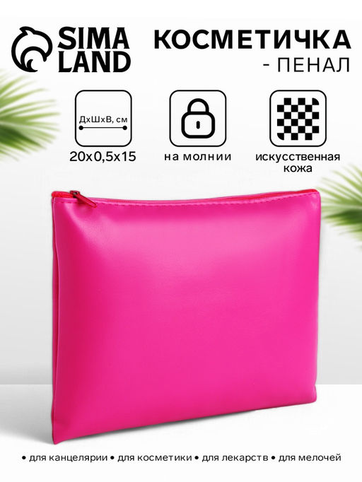 • Цена за 2 шт. Косметичка на молнии, плоская, средний размер, однотонная, малиновая