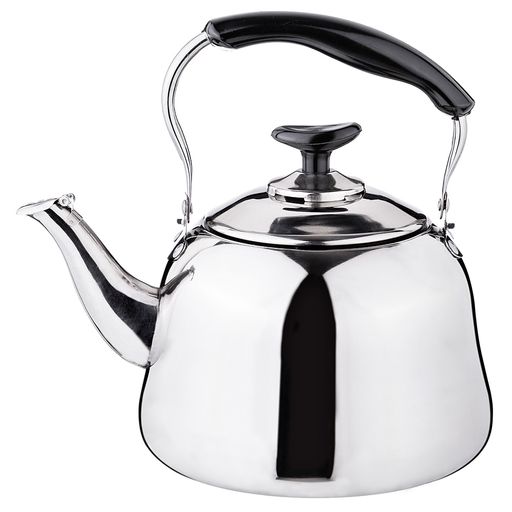 Благодаря пластиковой вставке чайник удобно переносить, а встроенный свисток подскажет, что вода в чайнике закипела и его пора снимать с плиты.
