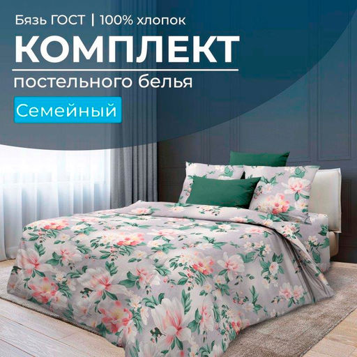 Семейный комплект с двумя 1,5-спальными пододеяльниками из бязи ГОСТ, плотностью ткани 140 г/м2. Ткань плотная, лощеная, высочайшего качества. Иногда про неё говорят, что это ткань, «как раньше была». И правильно говорят! Такая ткань имеет длительный срок службы, рисунки на ней смотрятся четко и выразительно. У этой ткани абсолютно натуральный состав - хлопок 100 %, она очень комфортна, экологична, не деформируется, хорошо впитывает влагу, позволяет коже дышать, что способствует вашему полноценному отдыху! В комплекте: два пододеяльника размером 150 * 215 см (вход в пододеяльник выполнен в нижнем шве – прорезь длиной 70 см), простыня размером 240 * 220 см, две наволочки размером 70 * 70 см на клапане глубиной не менее 25 см. Мы используем только натуральные материалы, а наши опытные специалисты обеспечивают качественный пошив. Наши изделия произведены в Ивановской области, имеют сертификацию качества "ГОСТ 31307-2005", а также зарегистрированы в государственной системе маркировки "Честный знак". -- Характеристики -- Вес: 3100 кг Размерность комплекта: Семейный Комплектность: 2 пододеяльника, 1 простыня, 2 наволочки Количество предметов в комплекте: 5 Размерность пододеяльника: 1,5 спальный Размер пододеяльника: 150x215 Кол-во пододеяльников в комплекте: 2 Замок пододеяльника: С прорезью Длина прорези (см): 70 см Размерность простыни: Евро Размер простыни: 240x220 Размер наволочки: 70x70 Замок наволочки: С клапаном Кол-во наволочек в комплекте: 2 Ткань: Бязь ГОСТ Состав: 100 % хлопок Плотность: 140 г/м2 Плотность плетения: Высокая Отделка: Без отделки Режим стирки: При 40 градусах Цвет: Серый Расцветка: Антуанетта Вид принта: Цветы Целевая аудитория: Взрослая