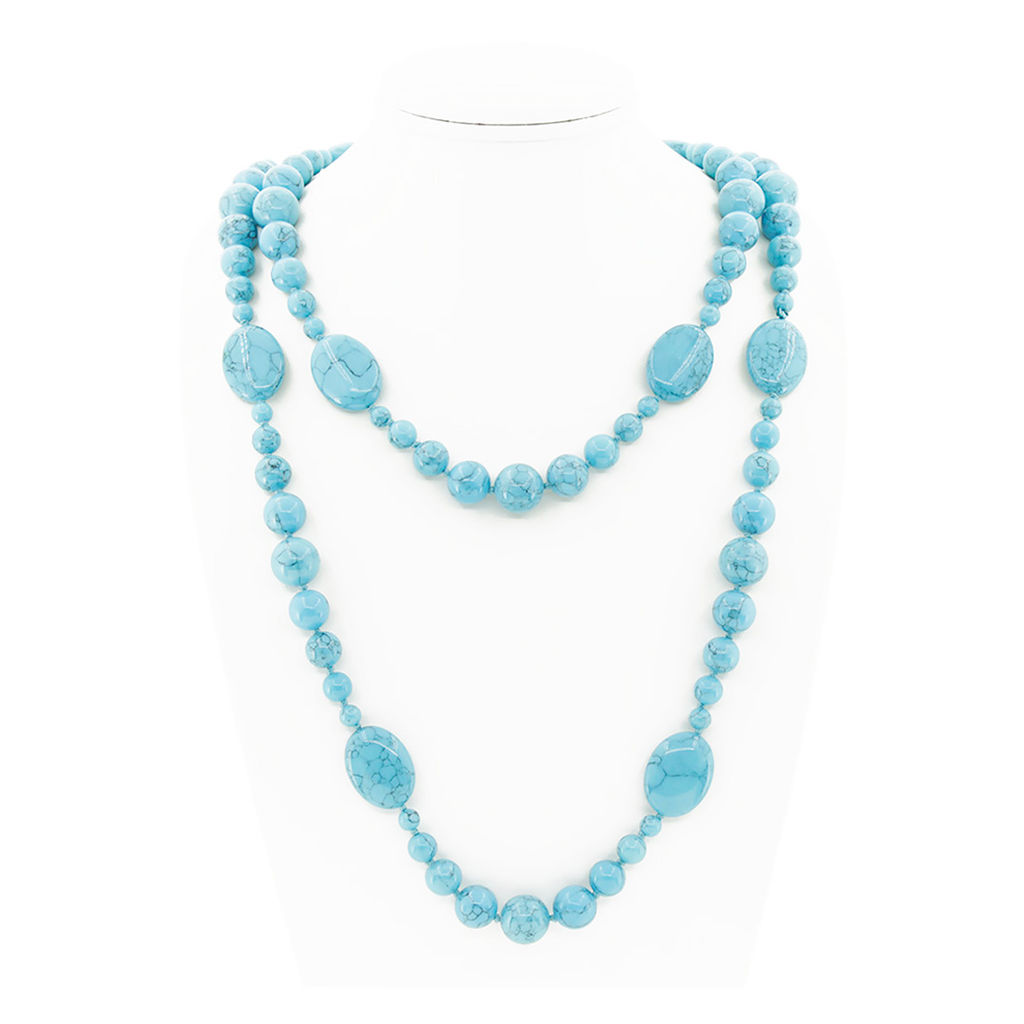 • Бирюза голубая (имитация), разноразмерные круглые с плоскими овалами 18х25мм, бусы "Стихия", длина бус 124см