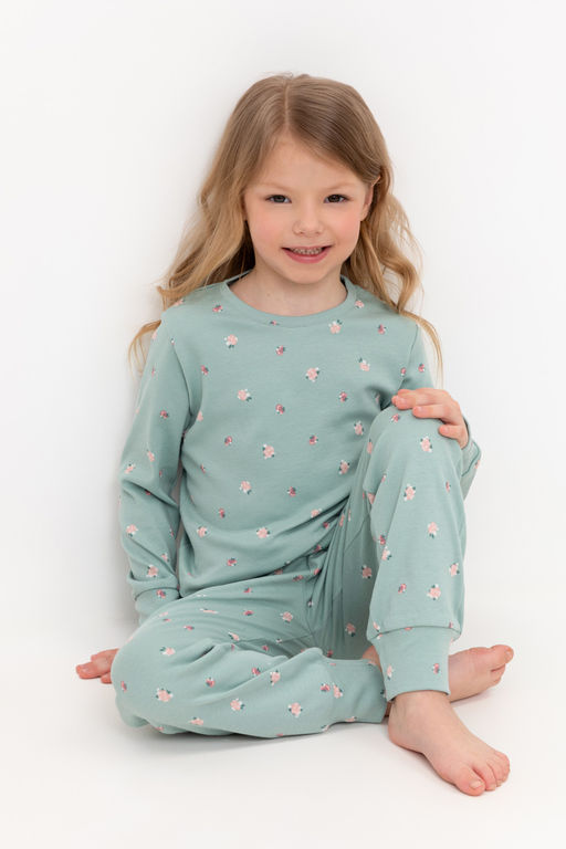 Трикотажная пижама из натурального хлопка. Джемпер с длинными втачными рукавами. У брюк в комплекте мягкий, эластичный пояс на резинке. Оригинальная набивка выполнена из стойких, гипоаллергенных текстильных красителей. Комплект сохраняет цвет и форму после многократных стирок. Все трикотажные полотна производятся в соответсвии с нормами Швейцарского сертификата ЭкоТекс.­