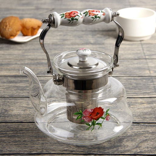 • Чайник стеклянный заварочный «Мари», 1,2 л, 18,5×16×12,5 см, металлическое сито