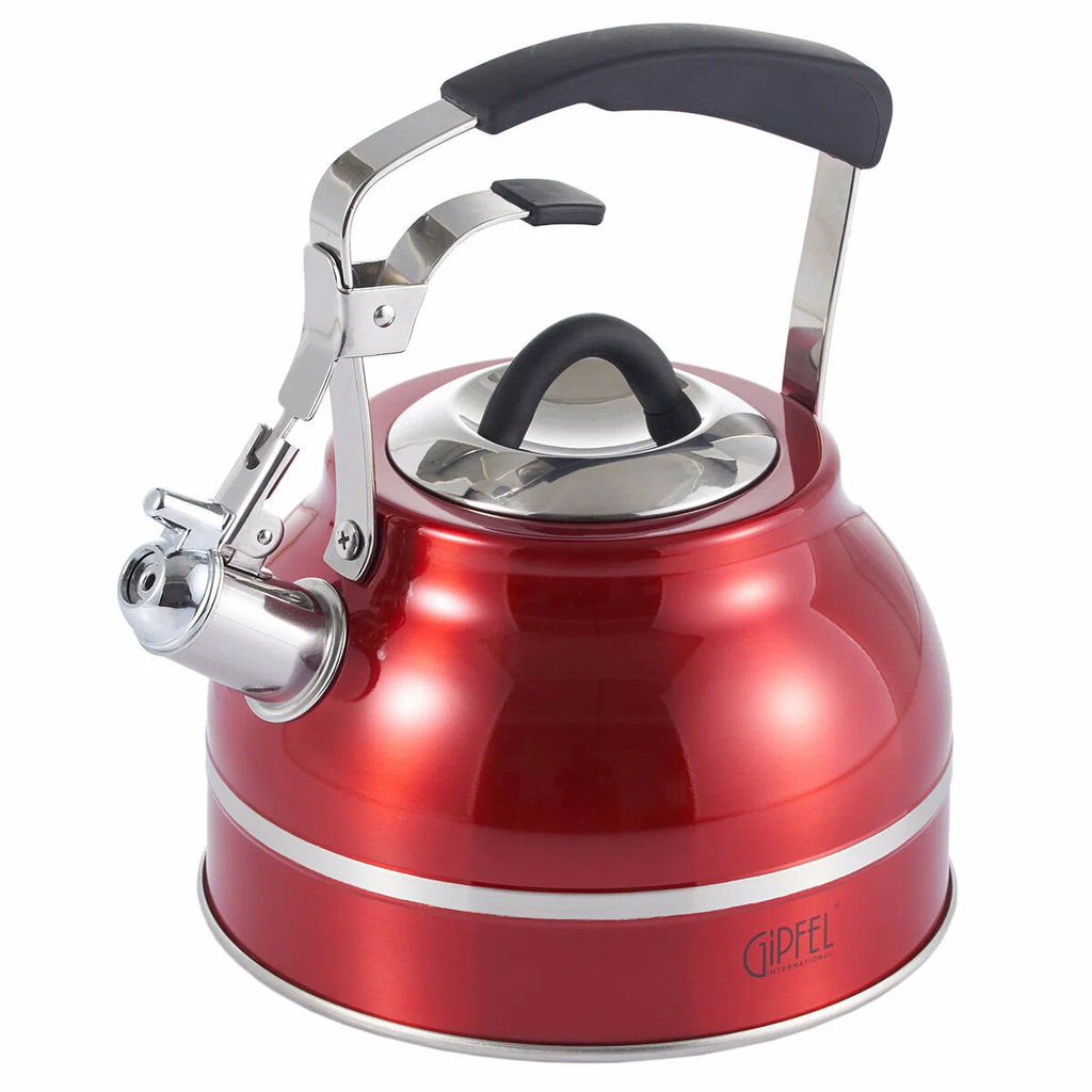 52119 GIPFELЧайник для кипячения воды CRETE 2.5л со свистком, с индукционным капсульным дном. Материал: нерж. сталь 18/10. Толщина: 0,5мм. Цвет: красный