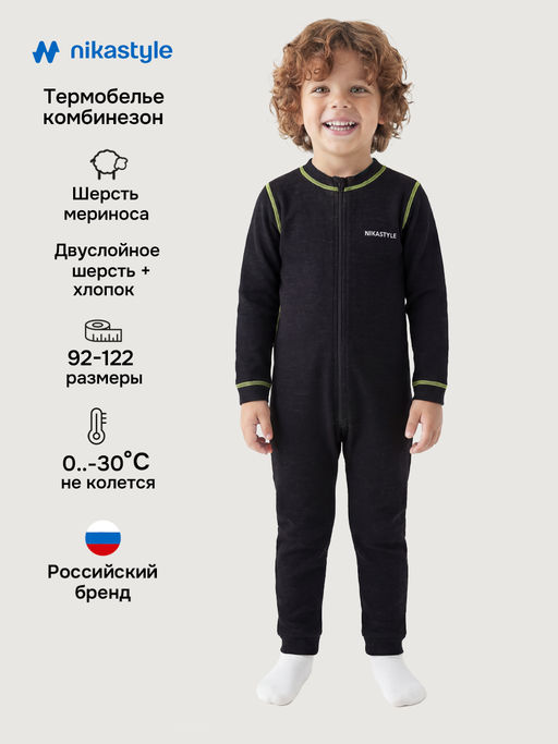 Комбинезон для мальчика ТЕРМО на молнии из двухслойного трикотажного полотна. Внешний слой состоит из шерстяных и акриловых нитей, сохраняющих тепло и выводящих лишнюю влагу.