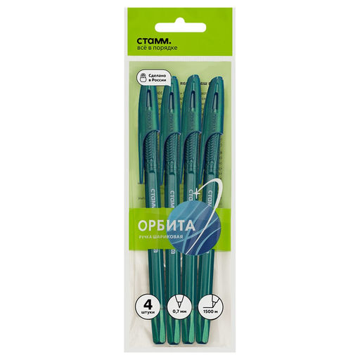 • Набор ручек шар. "СТАММ Орбита 100" 4шт., синие (РШ-32391-4) 0.7мм, корпус хамелеон