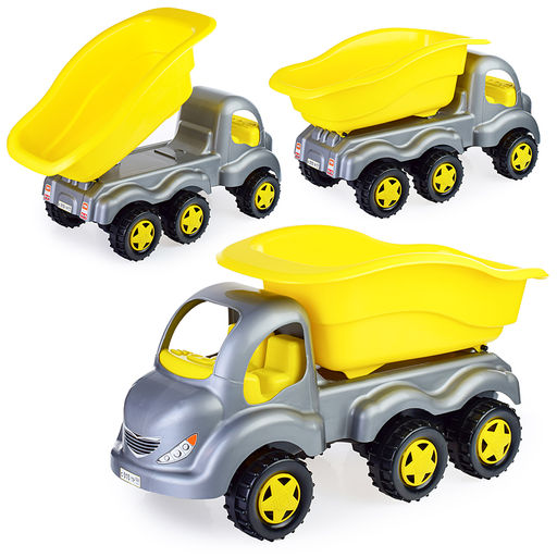 Самосвал «Мамонт» – пластмассовая игрушка, которую можно использовать как на улице, так и в доме. Машина большого размера с внушительным кузовом, в котором можно перевозить различные игрушки, песок. Кузов машины откидывается, как у настоящего самосвала. Машина оснащена 3 осями и 3 парами колёс. Диаметр колес 15 см.