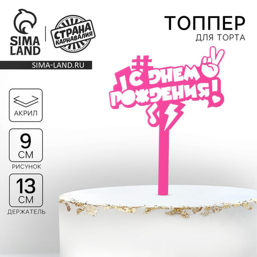• Цена за 2 шт. Топпер для торта акрил «С днём рождения», 13 см