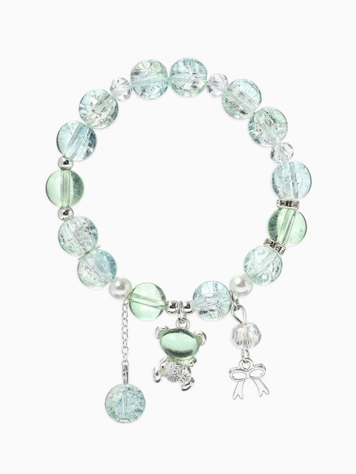 • Браслет с подвесками "Сахарный" мишка, шар №10/8, цвет зелёно-голубой в серебре