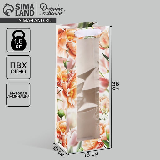 • Цена за 2 шт. Пакет подарочный под бутылку, упаковка, Цветы, 36?13?10 см