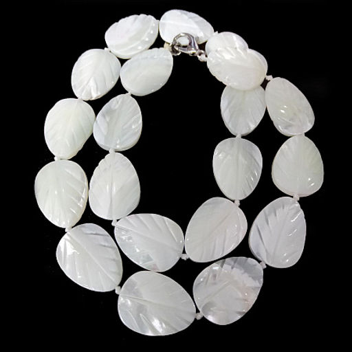Описание товара Бусы из перламутра Листочки. Нежное колье из белоснежных перламутровых листочков словно веточка оливы, застывшая в момент лёгкого дуновения ветра. Каждая бусина тонко вырезана с естественными прожилками и мягко изогнутыми краями, повторяющими форму живого листа. Перламутровая поверхность переливается нежным сиянием: в свете проступают едва уловимые оттенки розового, лавандового и жемчужно-серебристого, как утренняя роса на зелени. Надёжный замок карабин из ювелирного сплава обеспечивает комфортное ношение, а длина 45 см мягко облегает шею, создавая воздушный, почти невесомый силуэт. Белый перламутр, рождённый в глубине морских раковин, дарит ощущение чистоты и живой связи с природой каждый листочек уникален по игре света, как отпечаток пробуждающейся весны.