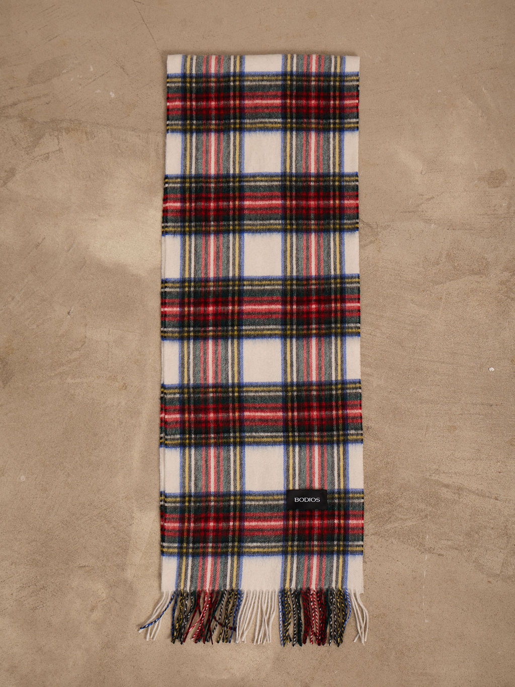 Классический тканый кашемировый шарф. Белая основа с чередующимися красными и синими полосками создает timeless-принт, который никогда не выходит из моды. Идеальное сочетание качества кашемира и вечной классики полосок