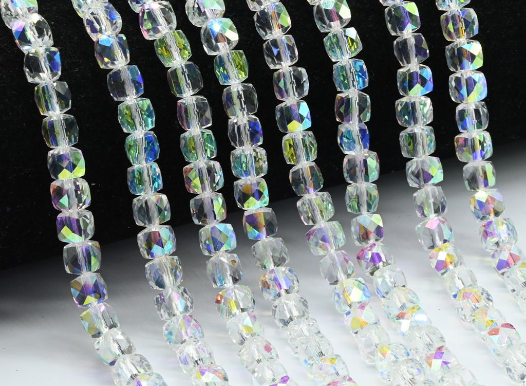Бусины из циркона кубик гр.6*6мм цв.хрусталь хамелеон, 38см, 63 бусины Радуга камня