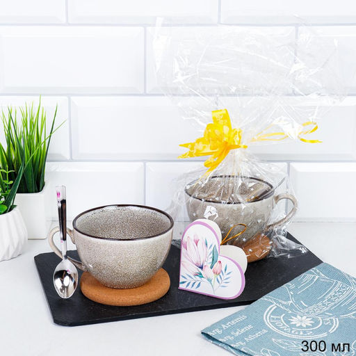 • Подарочный набор Кружка 300 мл Градиент с подставкой под горячее + ложка / WRF-270/ в подарочной упаковке АКЦИЯ