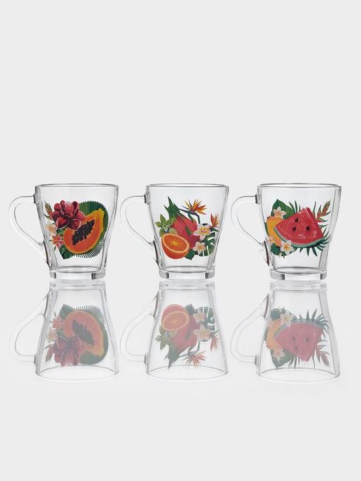 Цена за 20 шт. Кружка «Тропические фрукты», 250 мл, стекло, прозрачная, рисунок МИКС