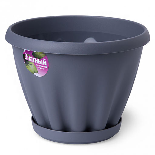 Горшок для цветов пластмассовый "Знатный" 1л, д14см, h11см, с поддоном, серый (Россия)