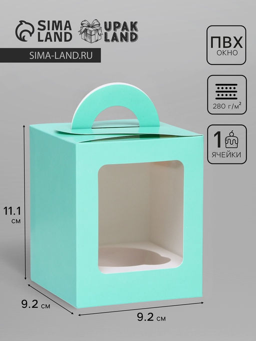 • Цена за 2 шт. Коробка для 1 капкейка, зеледляя, 9.2×9.2×11.1 см