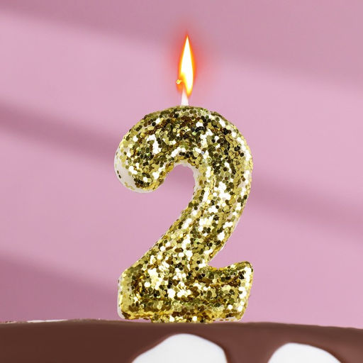 • Цена за 2 шт. Свеча в торт «Цифра 2», золотая, 5.5 см