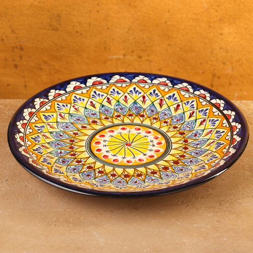 Набор: Нет. Форма: Круглая. Диаметр, см: 26. Тематика: Растительный орнамент. Тематика: Орнамент. Рисунок: Да. Вид тарелки: Плоская. Можно мыть в посудомоечной машине: Нет. Можно использовать в СВЧ-печи: Да. Текстура: Гладкая. Особенности: Глазурованные. Для горячего: Да. Бесплатная доставка: Да. Примечание: Ручная работа, рисунок может отличаться от фото.