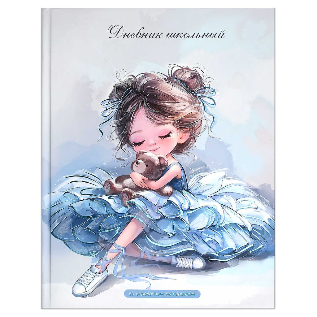 Дневник школьный арт. 72784 БАЛЕРИНА С МИШКОЙ / твёрдый переплёт 7БЦ, А5+, 48 л., выборочный перламутровый лак, тиснение фольгой, матовая ламинация, печать в одну краску, универсальная шпаргалка/